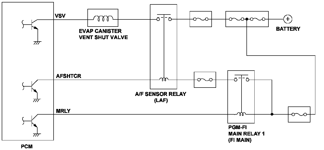 The evaporative emission (EVAP) canister vent shut valve is attached to the EVAP canister to control the venting of the EVAP canister to atmosphere. The EVAP canister vent shut valve is open (open to atmosphere) when the VSV signal is OFF. If the return signal is "OFF" when the powertrain control module (PCM) outputs the "ON" signal to the EVAP canister vent shut valve, the PCM detects a malfunction and stores a DTC.