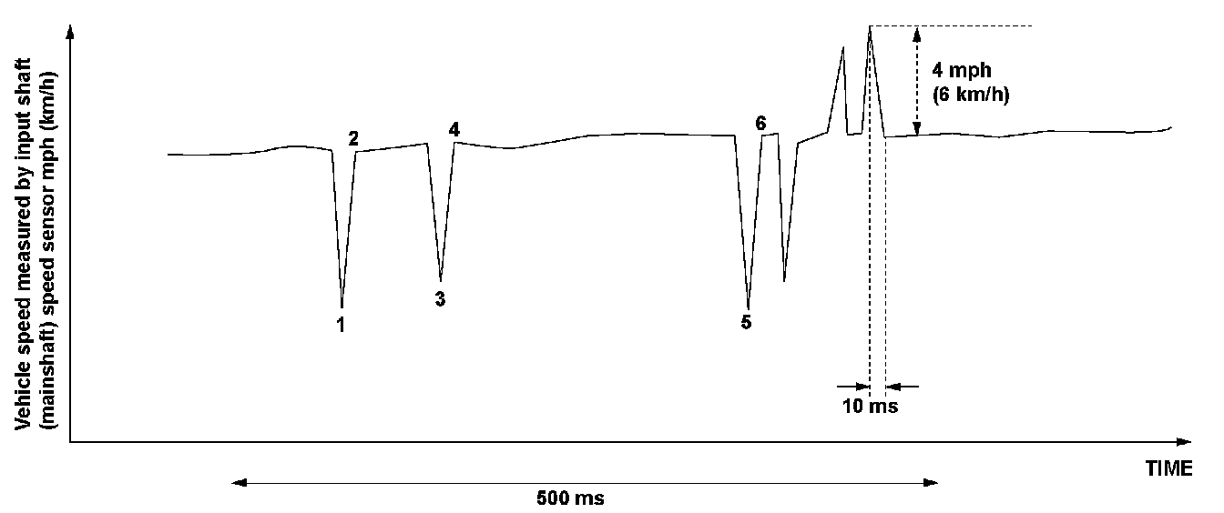 The fluctuation of the vehicle speed measured by the input shaft (mainshaft) speed sensor in 10 milliseconds is 4 mph (6 km/h) or more, and it fluctuates at least six times within 500 milliseconds.