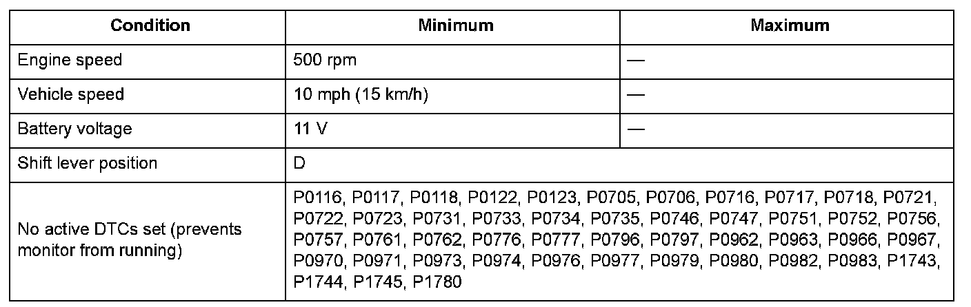 Conditions for setting the DTC