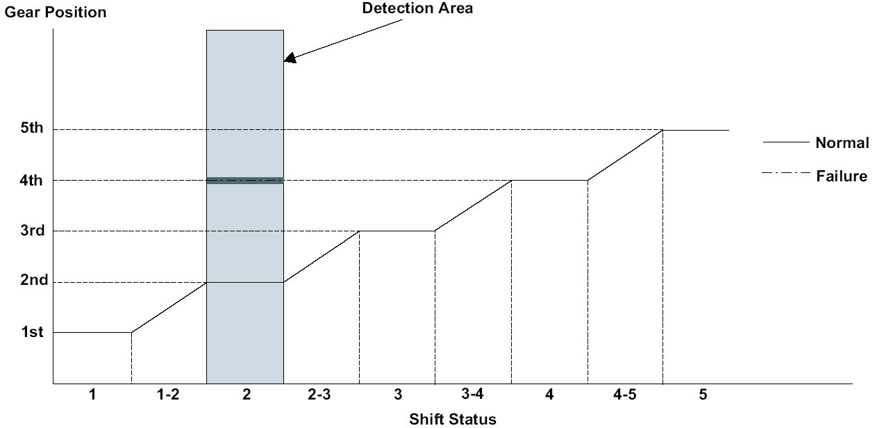 The transmission is held in 4th gear against the 2nd gear command for at least 1.5 seconds.