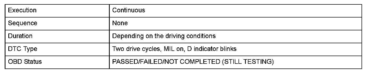 Monitor Execution, Sequence, Duration, DTC Type, OBD Status