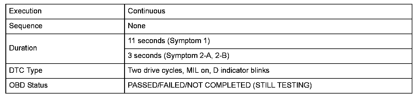 Monitor Execution, Sequence, Duration, DTC Type, OBD Status