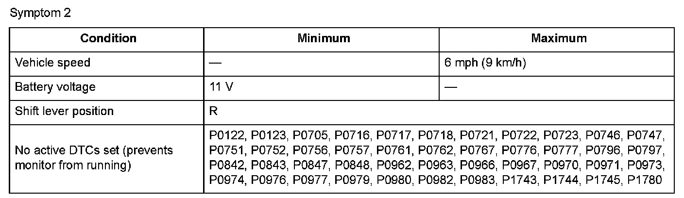Conditions for setting the DTC