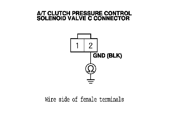 9. Check for continuity between A/T clutch pressure control solenoid valve C connector terminal No. 2 and body ground.