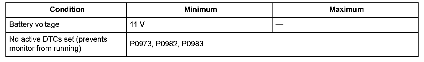 Conditions for setting the DTC