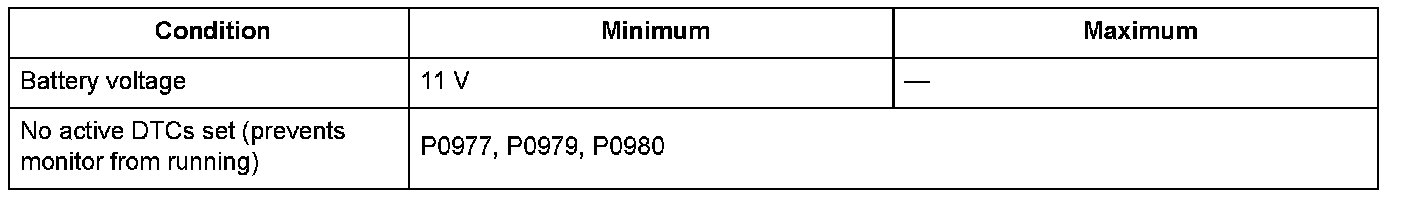 Conditions for setting the DTC