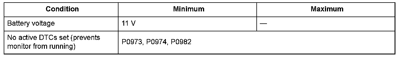 Conditions for setting the DTC
