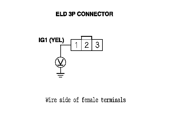 6. Measure the voltage between ELD 3P connector terminal No. 1 and body ground.