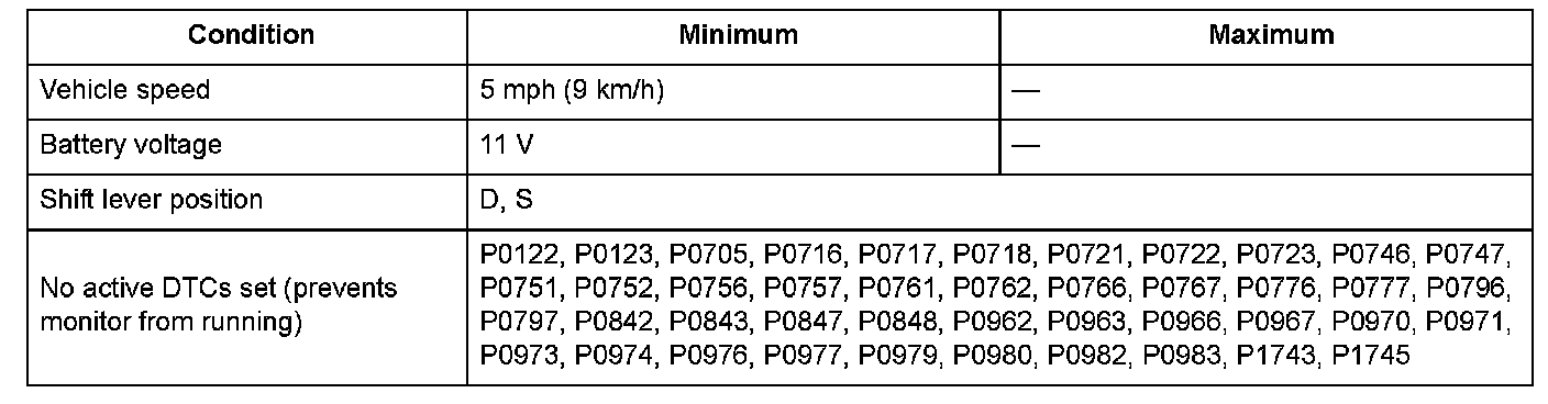 Conditions for setting the DTC