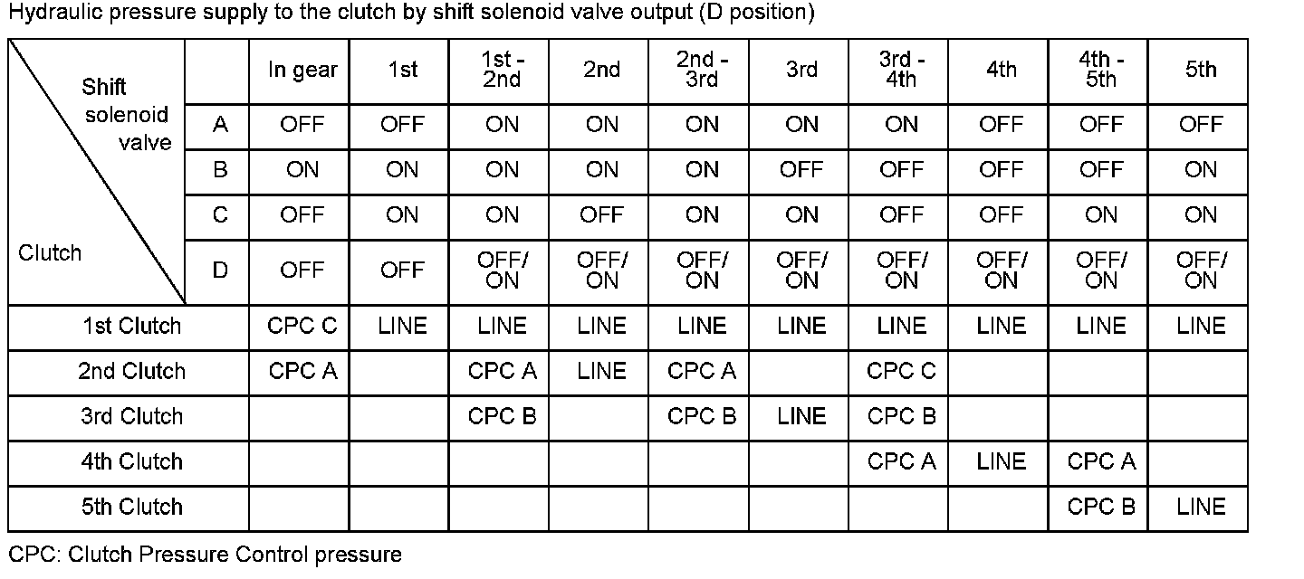 The servo control valve and the servo valve are part of the control circuit of the transmission. The valves operate when the shift lever is in D or S due to line pressure, and they turn off when the shift lever is in P, R, or N. The powertrain control module (PCM) monitors the mainshaft speed and the countershaft speed at the gear change determined by the shift schedule. When an improper gear ratio is output compared to the predetermined gear change mode, the PCM detects a servo control valve OFF or servo valve OFF failure and stores a DTC.