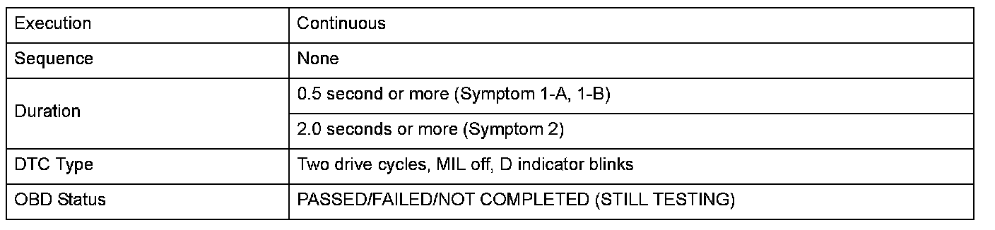Monitor Execution, Sequence, Duration, DTC Type, OBD Status
