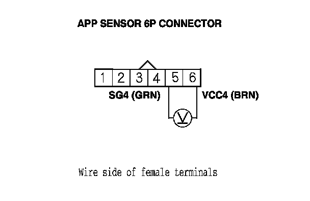 6. Measure the voltage between APP sensor 6P connector terminals No. 5 and No. 6.