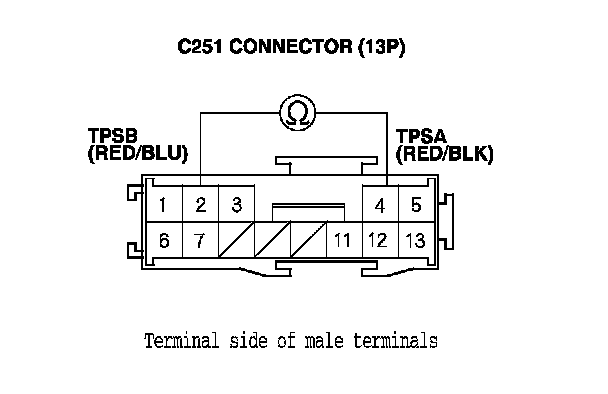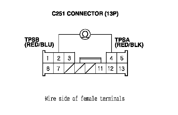 11. Check for continuity between C251 connector (13P) terminals No. 2 and No. 4.