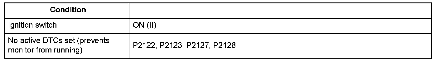 - The APP sensor B voltage exceeds the range from 2.31 V or less to 2.69 V or more when the APP sensor A voltage is 5.0 V.