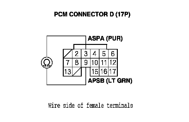 YES - Repair short in the wires between PCM connector terminals D3 (APSA line) and D4 (APSB line), then go to step 14.