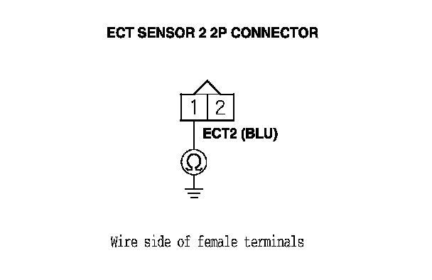 10. Check for continuity between ECT sensor 2 2P connector terminal No. 1 and body ground.