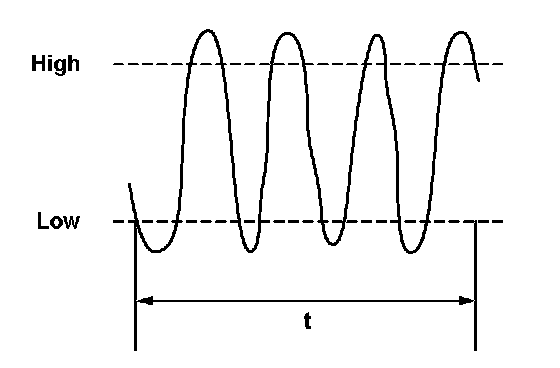 The front air/fuel ratio (A/F) sensor (bank 1, sensor 1) is installed in the exhaust manifold and detects oxygen content in the exhaust gas. The front A/F sensor transmits a signal to the powertrain control module (PCM), and it enables overall feedback control. The PCM controls fuel injection duration by comparing the target air/fuel ratio with the rear A/F sensor signal. When the VSB2 terminal voltage repeatedly fluctuates between a value above the specification and a value below the specification at a certain frequency, the PCM detects a malfunction and stores a DTC.