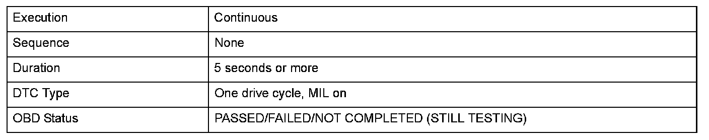 Monitor Execution, Sequence, Duration, DTC Type, OBD Status