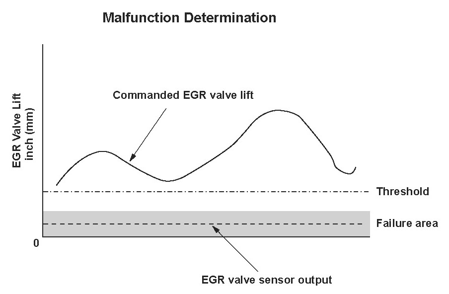If the actual valve lift is 0.005 in (0.15 mm) or less for at least 5.0 seconds, the valve is considered stuck closed.