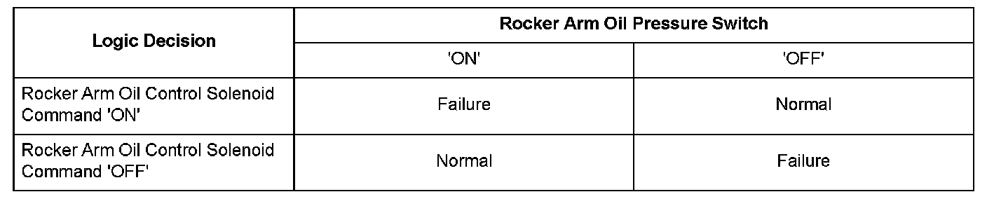 When the rocker arm oil control solenoid is ON, the rocker arm oil pressure switch remains ON.