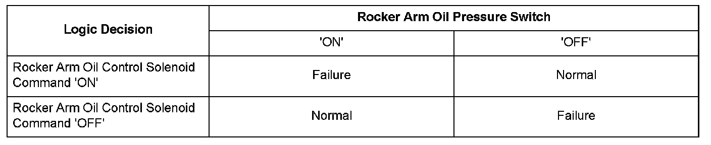 When the rocker arm oil control solenoid is OFF, the rocker arm oil pressure switch remains OFF.