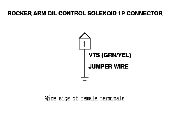 10. Connect the rocker arm oil control solenoid 1P connector terminal to body ground with a jumper wire.