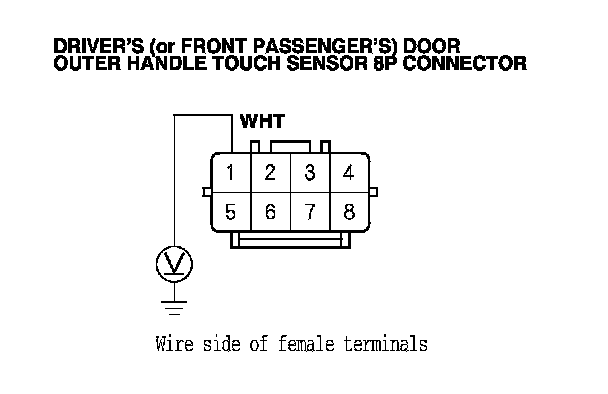 10. Measure the voltage between outer handle touch sensor 8P connector terminal No. 1 and body ground.