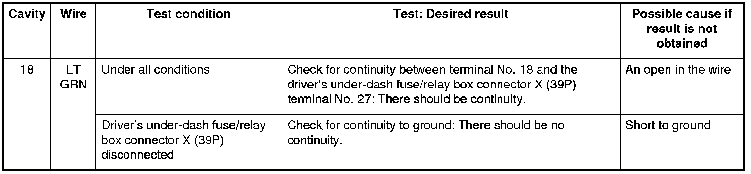 4. Reconnect the connector, and make these input tests at the connector.