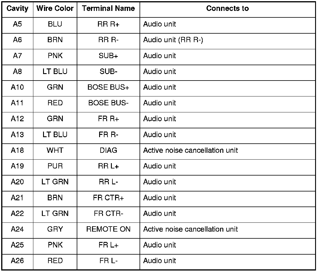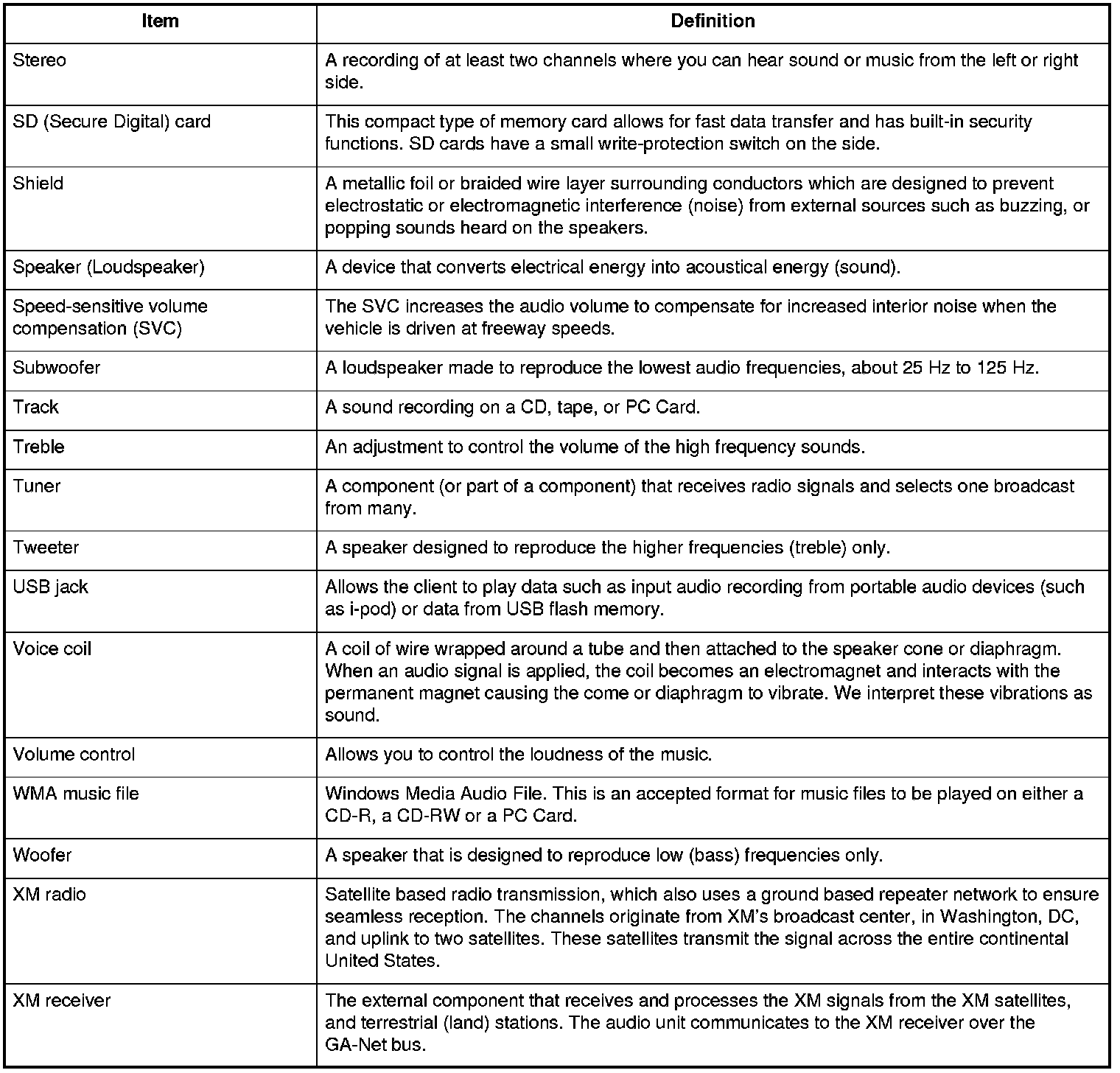 Each audio component passes its audio signal to the audio unit. In addition, it communicates with the audio unit via the GA-Net bus. Any open connection in this circuit will cause audio and navigation functions to appear inoperative.