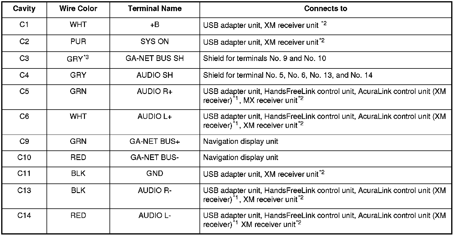 *3: The shielded wires have a heat-shrink tube insulating the outside of the wire. The color of the insulating tube, typically black or dark gray, may not match the color of the wire listed on the schematic.
