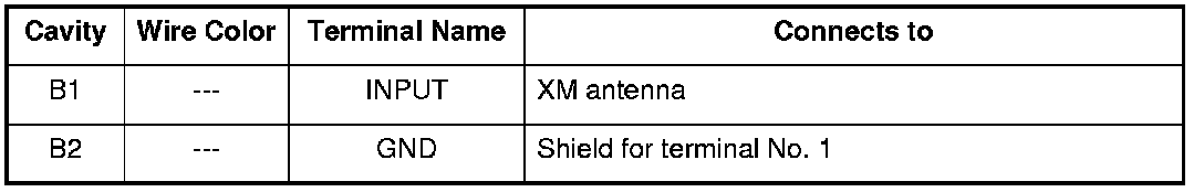 XM Receiver Connector for Inputs and Outputs (With XM receiver)