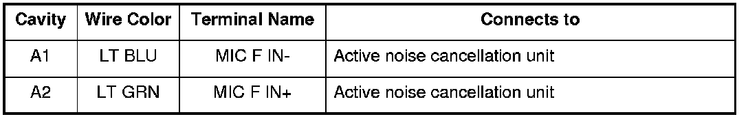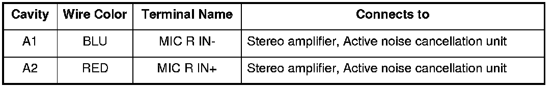 ACTIVE NOISE CANCELLATION FRONT or REAR MICROPHONE CONNECTOR A (2P)