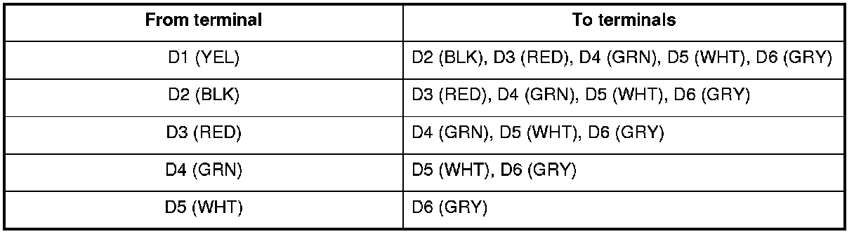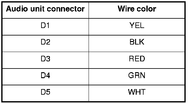 11. Check for continuity between audio unit connector D (6P) according to the table.