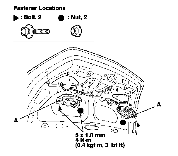 1. Remove the trunk lid trim. Interior Trim Removal/Installation - Trunk Lid