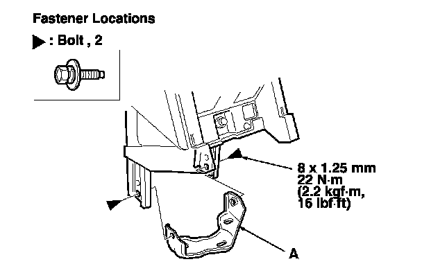 12. Remove the bolts, then remove the center bracket (A).