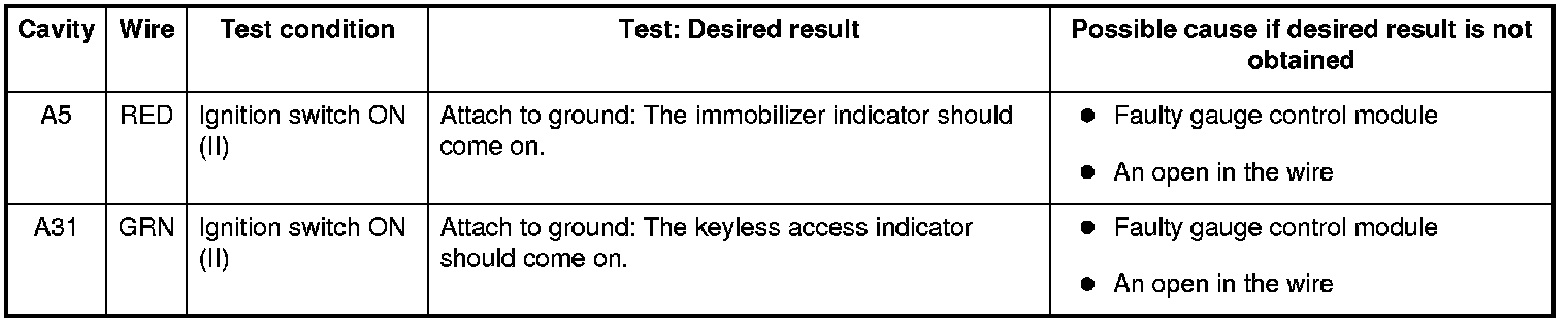 6. Reconnect the connectors to the keyless access control unit, and do these input tests at the following connectors.