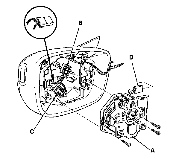 2. Remove the three mounting screws from the power mirror actuator (A), then pull the actuator, out slightly.