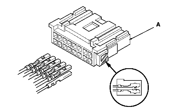 6. Disassemble the power mirror 16P connector (A), and remove all the terminals from it.