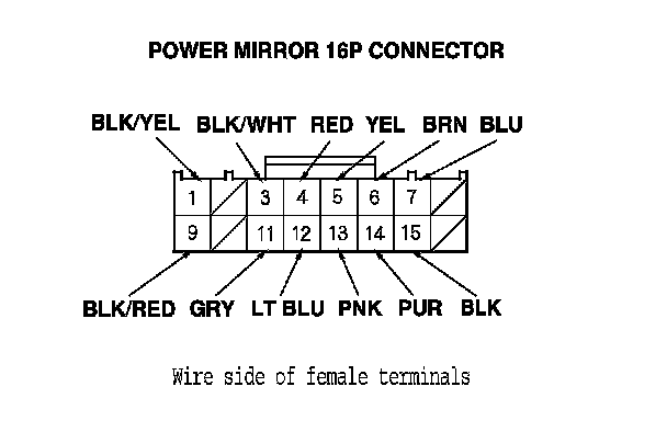 5. Record the power mirror 16P connector terminal locations and wire colors.