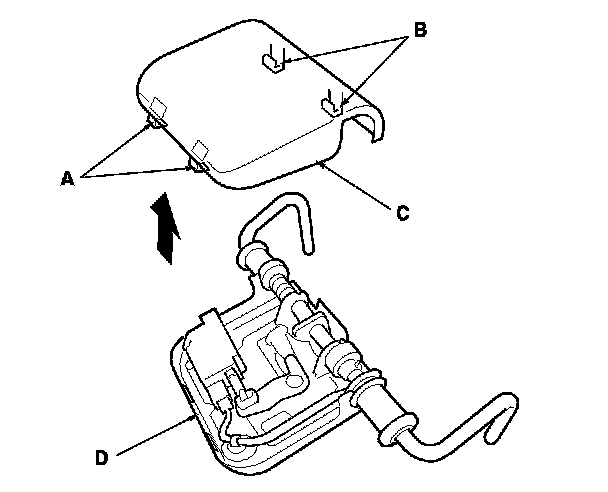 2. Detach the hooks (A), and release the hooks (B), then remove the head restraint case (C) from the head restraint (D).