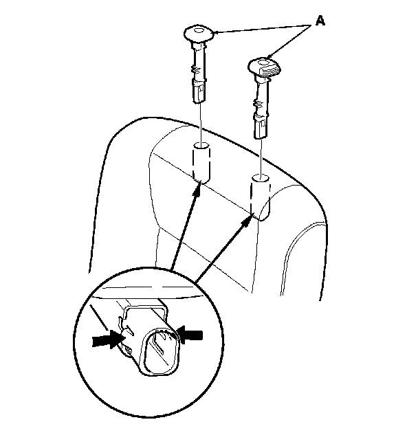 11. Pull out the head restraint guides (A) while pinching the tabs on the end of the guides, and remove them.