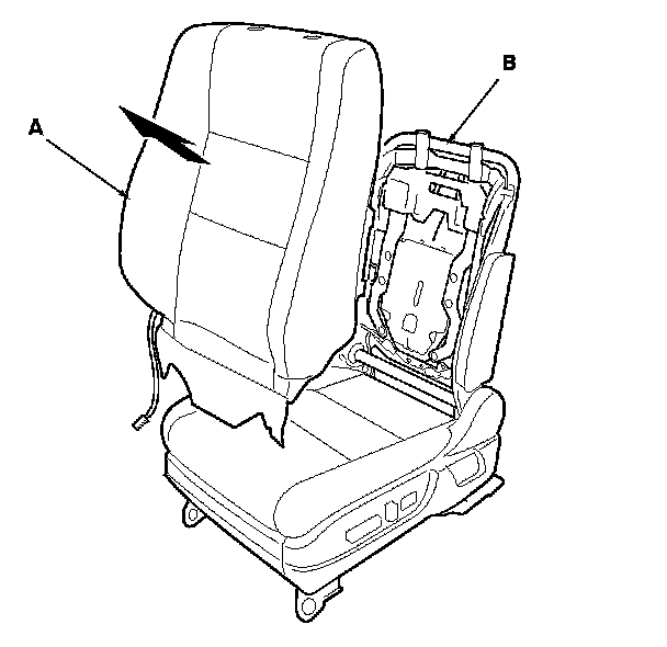 12. Remove the seat-back cover/pad (A) from the seat-back frame (B).