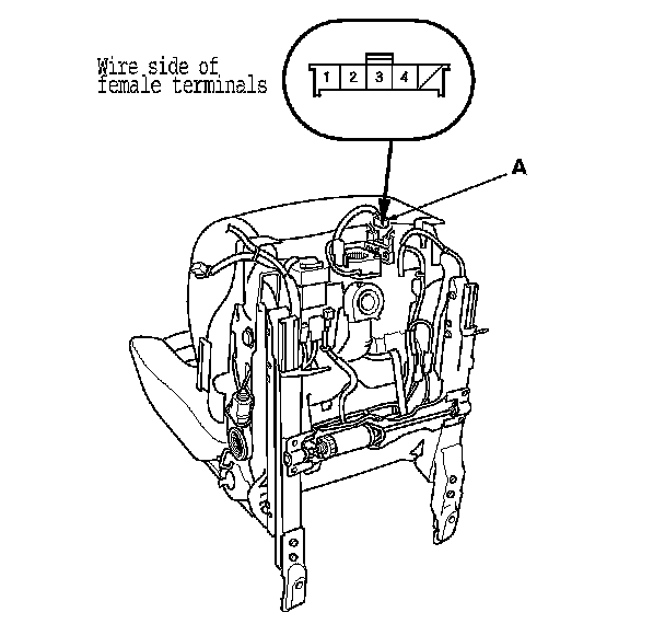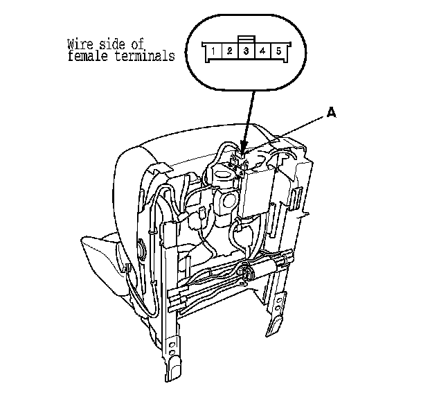 2. Disconnect the 5P connector (A) from the seat cushion heater.