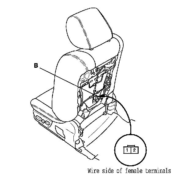 5. Check for continuity between seat-back heater 2P connector terminals No. 1 and No. 2. There should be continuity. If there is no continuity, replace the seat-back heater.