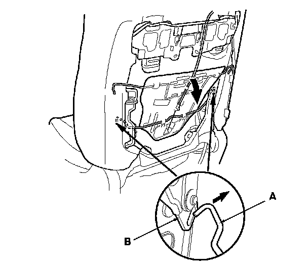 5. Release the lower wire (A) from both active head restraint links (B) of inside the seat-back.