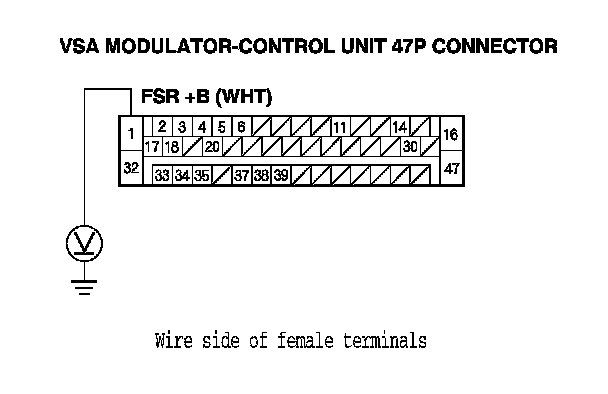 4. Measure the voltage between VSA modulator-control unit 47P connector terminal No. 1 and body ground.