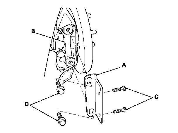 NOTE: Place two bolts (C) in the brackets before tightening the bolts (D).