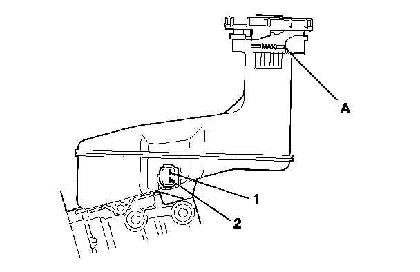 - Fill the reservoir with brake fluid to the MAX (upper) level (A). With the float up, there should be no continuity.
