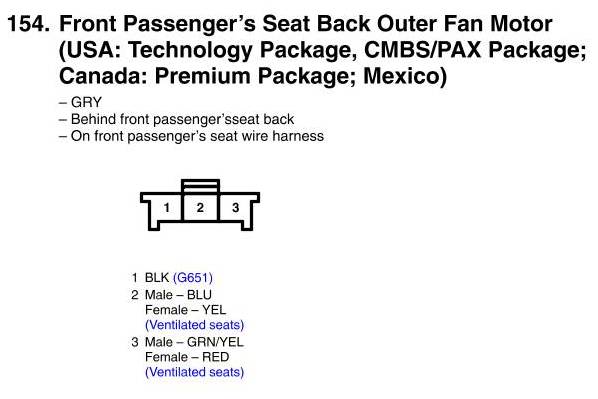 View 154 - Front Passenger's Seat Back Outer Fan Motor Connector View (USA: Technology Package, CMBS/PAX Package)