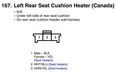 View 167 - Left Rear Seat Cushion Heater Connector View (Canada)